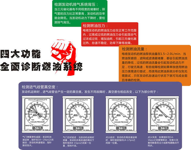 3、引擎真空度測試范圍:-100~0Kpa